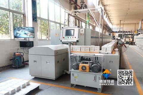 近期,精城特瓷8号高温双道循环推板隧道窑正式点火投产,标志着企业在自动化生产和工艺控制上取得进一步突破。这条窑炉最直观的改变是——工人不再需要手动搬运推板,取而代之的是半自动化系统,推板能够自主进出窑炉,生产节奏明显加快。